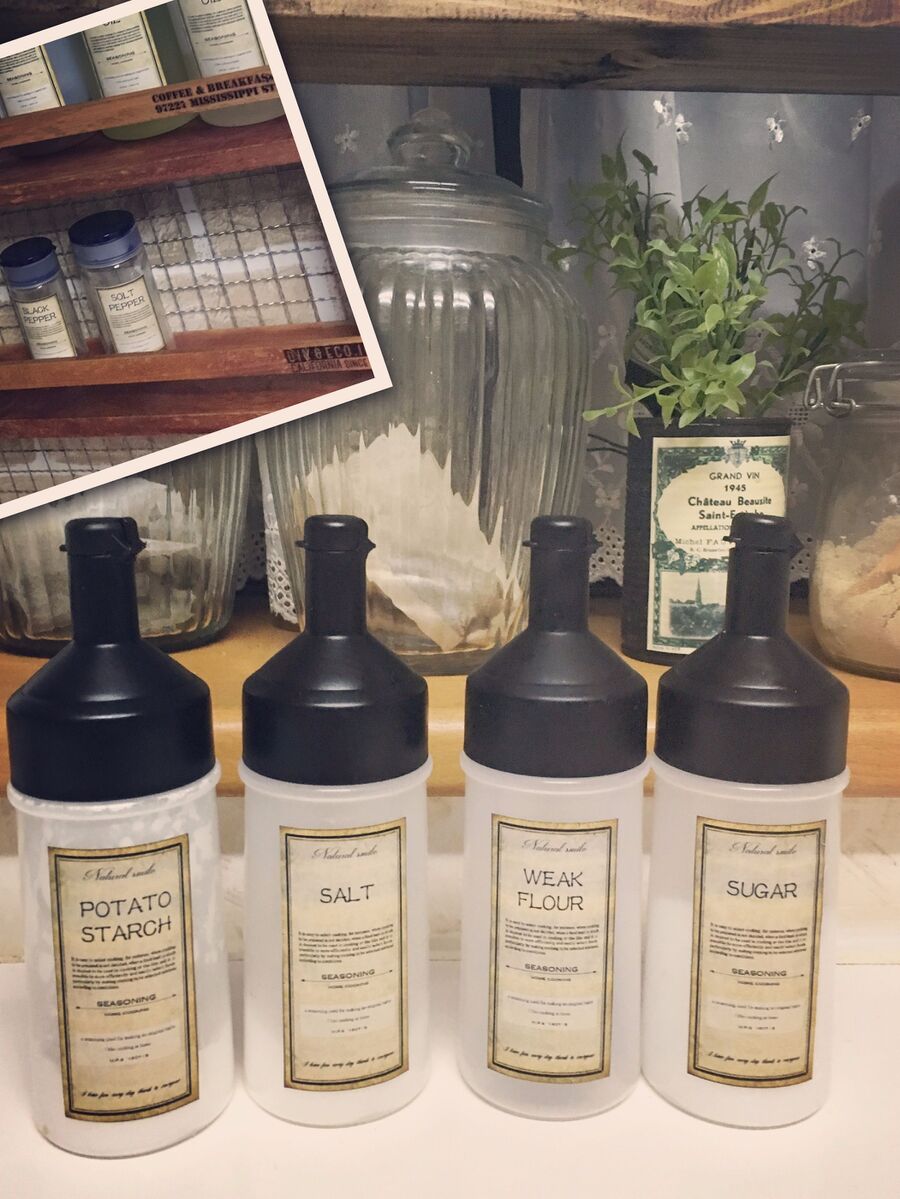 セリアのオイルボトルをラベリングして 小麦粉などの調味料収納に 暮らしニスタ